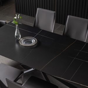 1.The Mohs hardness of the ceramic dining table can reach eight levels, relatively high temperature resistance, the water absorption rate is basically 0, the surface has no voids, and the color and texture are natural. You can not only dine on the ceramic dining table, but also barbecue on it.