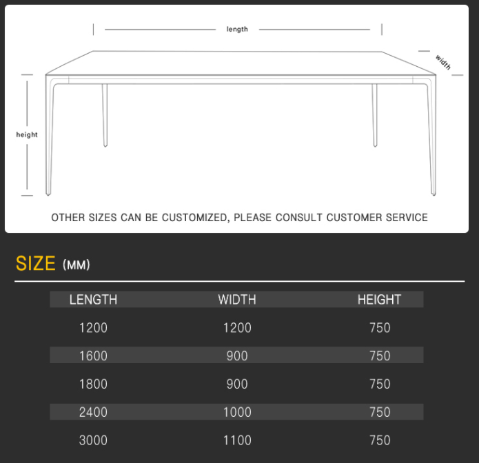 As a professional ceramic top dining table manufacturer, we can customize the dining table according to the size required by the customer. If you are interested in our products, please feel free to contact us at any time.