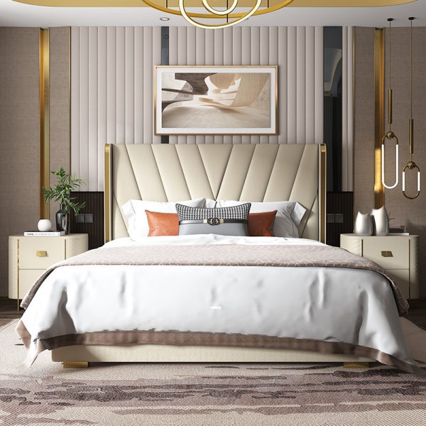 Italian style light luxury leather double bed