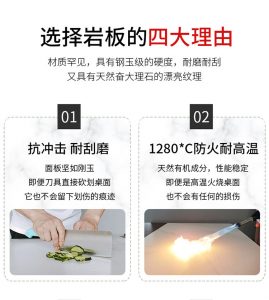 Such as fire resistance, stain resistance, abrasion resistance; food-grade safety standards; anti-fouling and anti-bacterial care; nano-level anti-penetration; formaldehyde-free; impact resistance and scratch resistance; Danish master design.Ceramics have nanometer-level density, which is better than ordinary stone. The water absorption rate is only 0.02%. The stains cannot penetrate, and it is as clean as ever with a light rub. The desktop made of 11mm rock slabs has a Mohs hardness of 5-6, which can withstand various strong impacts and withstand the direct scratches of metal objects. Even if you use an electric drill to repeatedly touch the table, it will not leave a trace.
